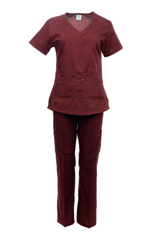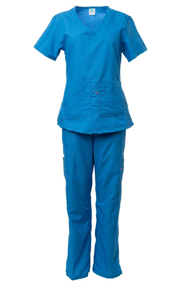 Filipina cuello ovalado con bolsas al frente, pantalon con elastico y jareta, 2 bolsas delanteras, 2 bolsas de cargo, 30 % algodon y 70% polester