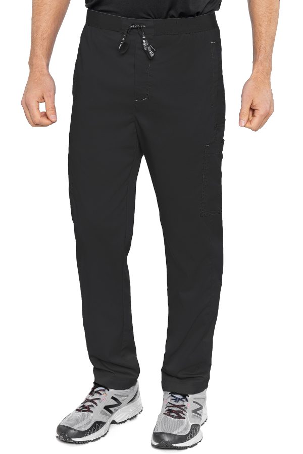 Pantalon con elastico en la cintura, 2 bolsas delanteras, una trasera , 2 bolsas de cargo, 76% poliester, 21 % rayon, 3% spandex